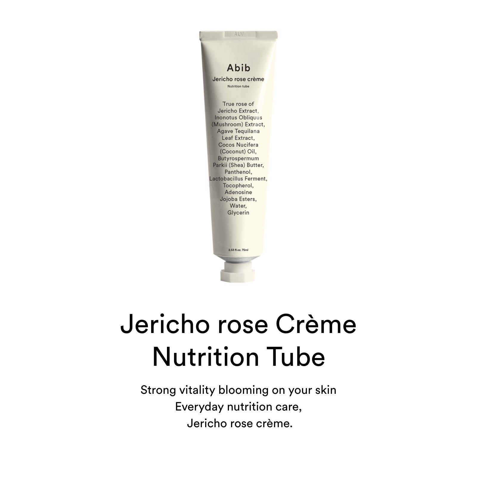 The Abib Jericho Rose Crème Nutrition Tube is a rich, nourishing moisturizer designed to revitalize dry and dull skin. Infused with 3% Jericho Rose Extract, this cream replenishes and strengthens the skin’s barrier, enhancing its natural vitality. Enriched with Chaga Mushroom Extract and Panthenol, it soothes irritation and promotes healing. The addition of Shea Butter locks in moisture, preventing dryness and irritation. Its creamy texture absorbs quickly without leaving a greasy residue, making it suitable for dry to combination skin types, including sensitive skin.