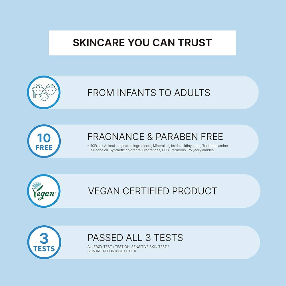 Refreshing moisturizing gel lotion with Phytoceramide, Ceramide Skin Complex and amino acid to soothe & cool sensitive skin even heat rashes.Unscented, mild formula that is suitable for sensitive, oily skin type. Can be used for the whole family from infants to adults.Clinically tested:- Reduce skin temperature by 10 celsius in just 10 mins- Immediate skin hydration +100% on babies +85% on moms- Vegan Product- 10 FREE: Animal-derived ingredients, Paraben, Mineral oil, Polyacrylamide, Imidazolidinyl urea, Triethanolamine, Silicone oil, Synthetic colorant, Fragrance & PEG surfactant- Passed all 3 strict skin safety tests: Allergy, sensitivity panel & dermatologist tests