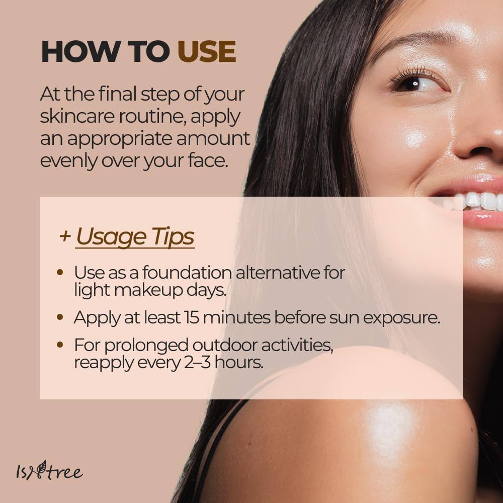 واقي شمس بتأثير تون أب بعامل حماية SPF50+ PA++++، يعمل على تفتيح وتوحيد لون البشرة مع الحماية من أشعة الشمس. غني بجذر اليام والحليب النباتي لترطيب وتهدئة البشرة. مثالي للبشرة العادية، الجافة، والباهتة لمن يبحث عن لمسة مشرقة طبيعية وتأثير تفتيح خفيف