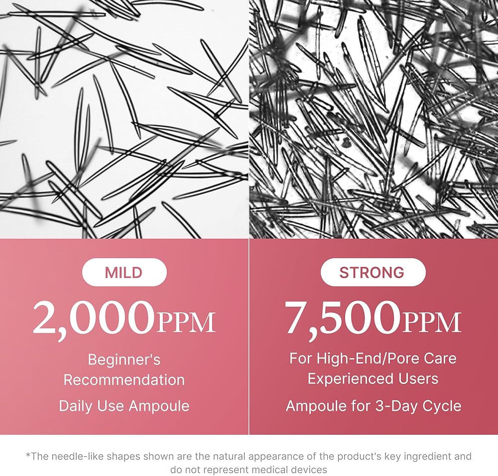 يتوفر بنسختين مخصصتين — واحدة للمبتدئين وأخرى للمستخدمين ذوي الخبرة — ويُعتبر هذا السيروم بتركيز 7500 جزء في المليون (ppm) مناسبًا للمستخدمين المتقدمين، ويُنصح باستخدامه كل 3 أيام.