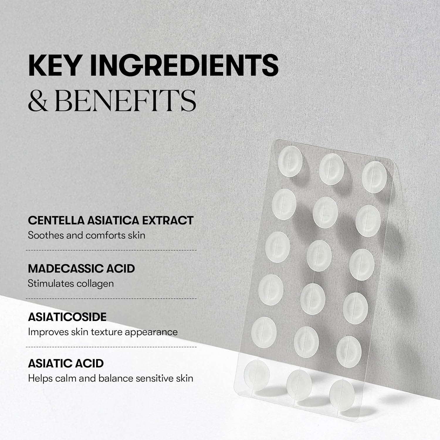 عالجي الحبوب بسرعة وفعالية مع مجموعة لصقات الحبوب من VT - برو سيكا بخلاصة السينتيلا الآسيوية. تحتوي هذه اللصقات الشفافة على مستخلص عشبة السينتيلا الآسيوية (المعروفة أيضًا باسم "عشبة النمر")، والتي تشتهر بقدرتها على تهدئة البشرة وتسريع عملية التعافي.